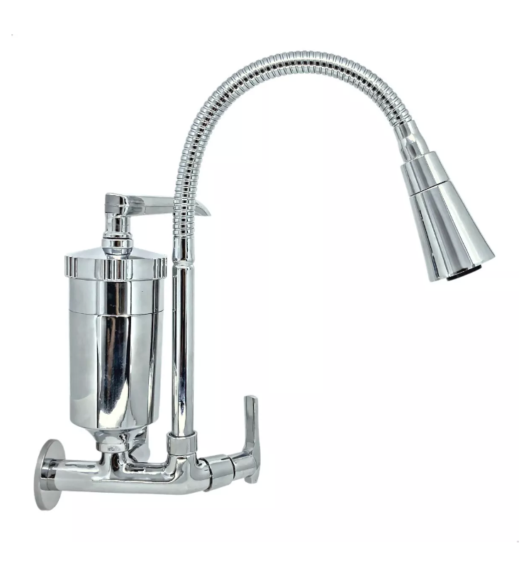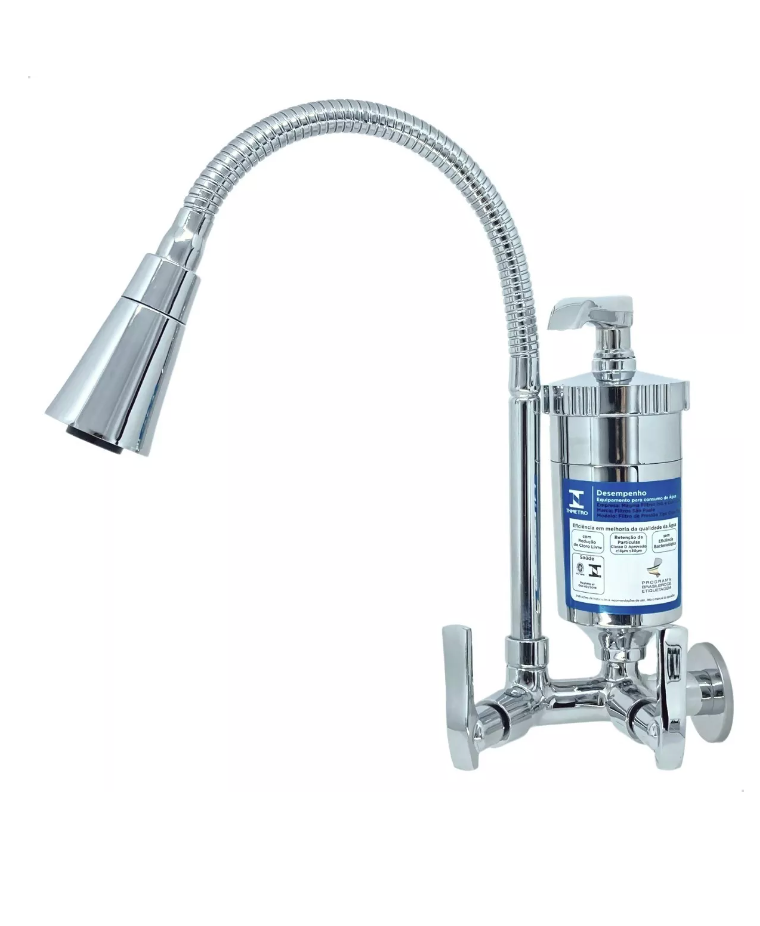 Torneira para filtro de cozinha parede, gourmet cônico cromada, bica móvel com volante c29. Fabricada com a mais alta qualidade e sofisticação do mercado. Corpo todo em metal, tubo de 3/4”, mecanismo 1/4” de volta cerâmico e copo de filtro em abs. O filtro possui um sistema para uma filtração mais moderna e eficiente, purificando e reduzindo o cloro e impurezas, proporcionando uma água de qualidade, tudo que você precisa para sua casa e saúde - possui certificação autorizada pelo inmetro no filtro - trocar o elemento filtrante a cada 6 meses por recomendação do inmetro.